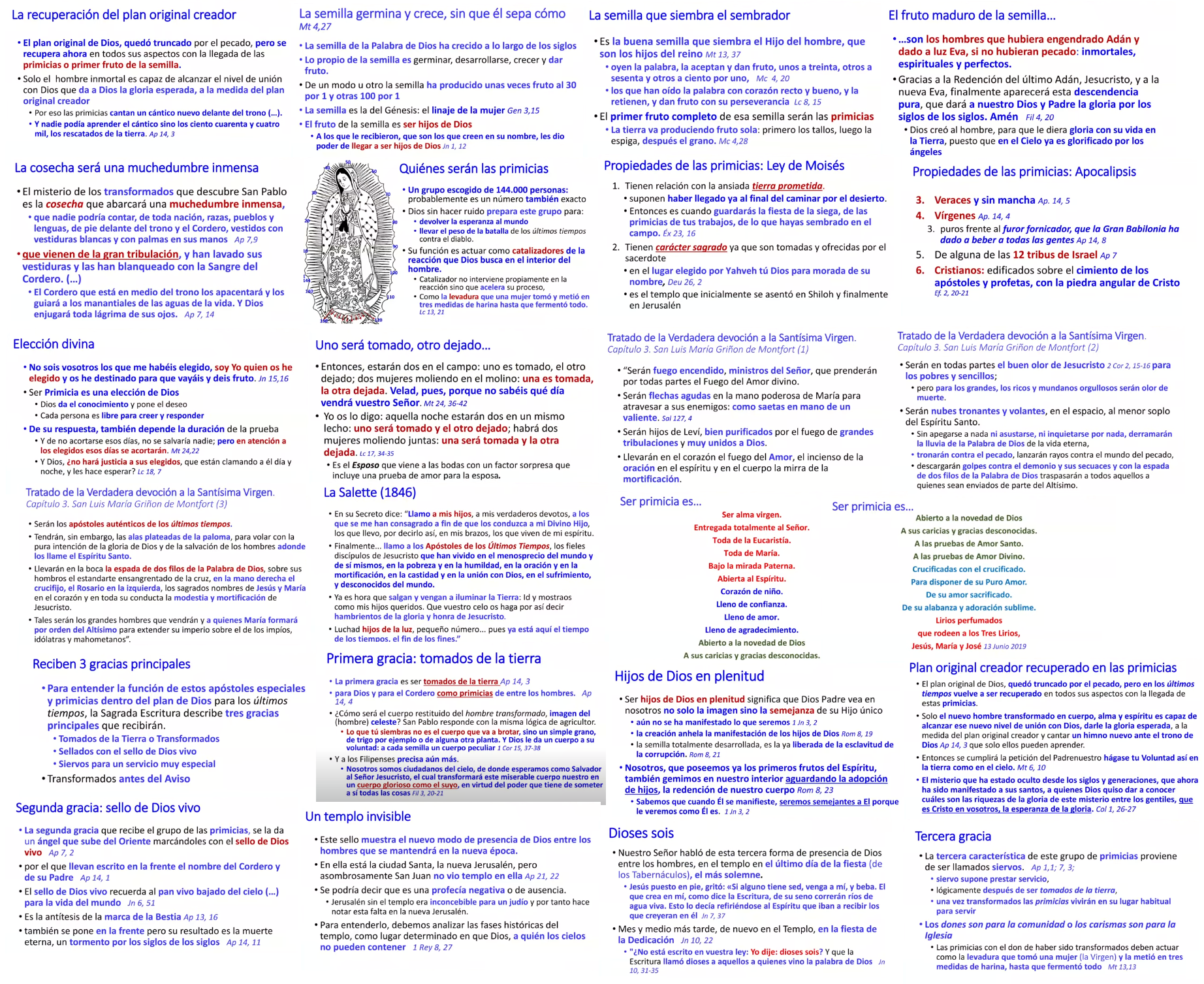 El video muestra que Dios no deja ningún detalle de su plan de batalla o Redención al azar, así como la íntima unión de los nombres con los textos referentes a los últimos tiempos en la Sagrada Escritura y especialmente en el libro del Apocalipsis. Su Providencia cuida especialmente de todo aquello que tiene que ver con su Madre y nuestra Madre, la Virgen María. Por último, la charla trata sobre la unión y síntesis que tiene el rezo de la Salve, con que universalmente nos acogemos los cristianos a la protección de la Virgen María.
