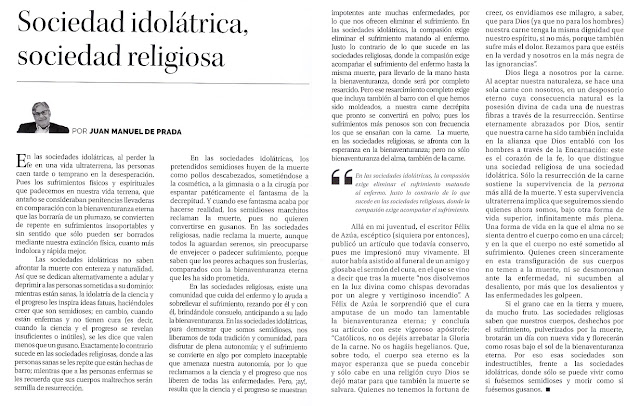 "En las sociedades idolátricas, la compasión exige eliminar el sufrimiento matando al enfermo. Justo lo contrario de lo que sucede en las sociedades religiosas, donde la compasión exige acompañar el sufrimiento".